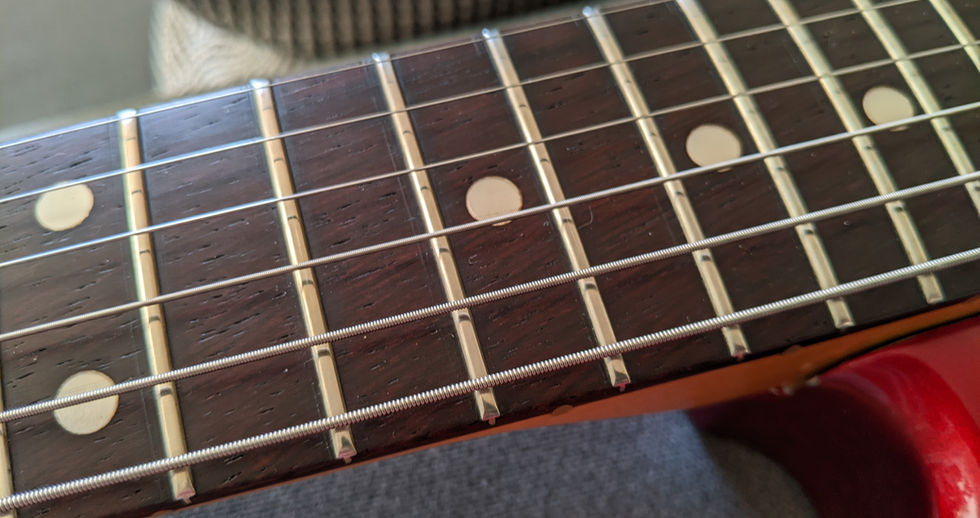 I also set it up to my preferences and I am getting good at setting up Jaguars. The trick is to have a decent angle on the neck and for this a 1 degree Stew Mac shim was used and also screwing the mute down to allow full travel but also low enough so the bridge can move with a clear gap between the underside and these mute screws. It's a fiddle but going back and forward you can get the perfect balance.