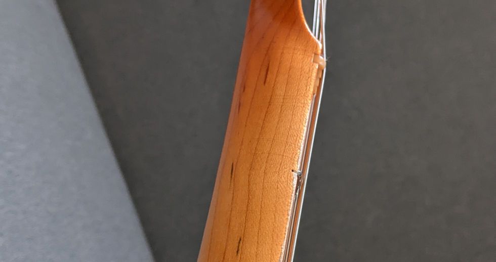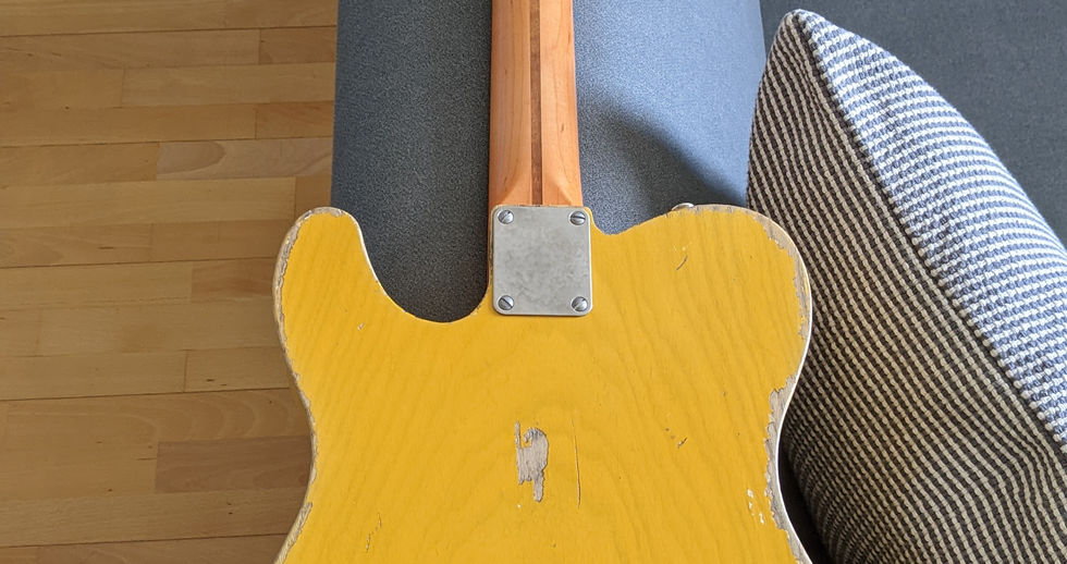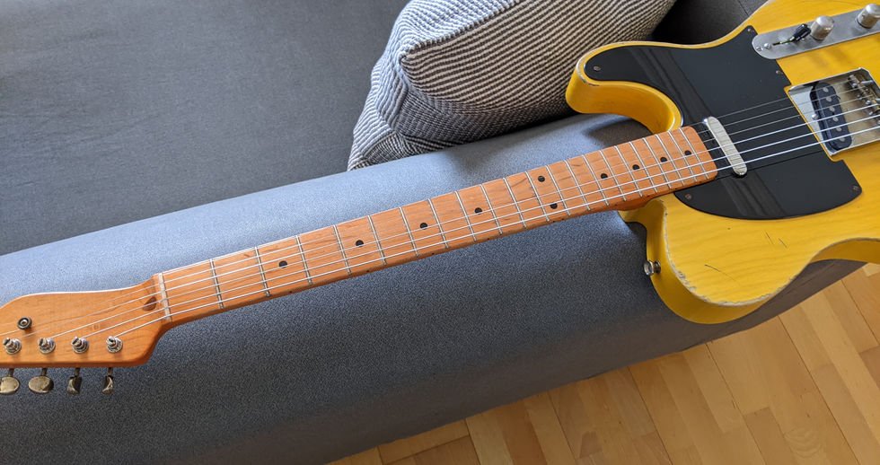 I got in touch with Scott Cameron of Golden Era Guitars and asked him if he had any chunky Telecaster maple necks and he had an Allparts TMO-FAT neck which he would sell to me finished with nitro, aged and with nut, frets and tuners, ready to put on. This is a chunky 1" to 1" first to 12th fret neck.