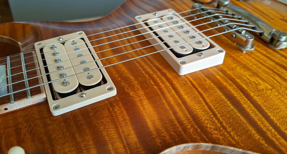 Now, the urge to mod is great and after my pal bought a set of Mojo NOS wire PAF humbuckers and let me try them, I placed an order as well. They sounded fantastic and, as much as I love the Huber, the Häussel humbuckers didn't have the air that I liked about Gibson Custombuckers and I believe the reason is that the Häussel pickups are intensively potted. There is no 'ting' to them as you tap the cover and consequently, the guitar does have a pronounced mid hump, especially with the bridge position which is further away from the bridge than a normal Les Paul style guitar.